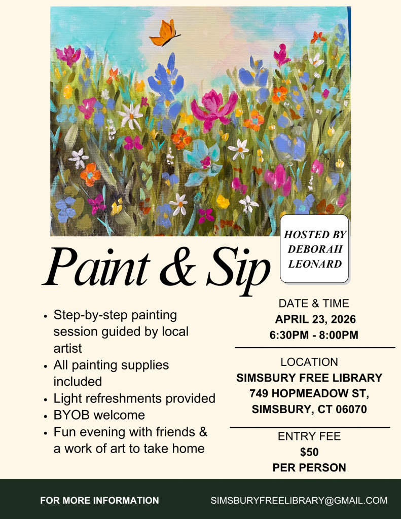 Drop off cash or checks to Simsbury Free Library. Get them in before April 23rd so we can officially mark you as coming to the event. If you aren’t able to drop off your cash/check in person, mail us at the address below.